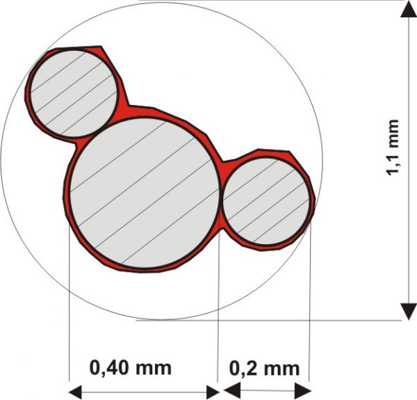 Caracteristici: realizată din 2 fire de sîrmă zincată, ambele acoperite cu plastic – diverse culori: unul de Ø0,4 mm, iar celălalt de Ø0,2 mm. Firul de Ø0,2 mm se răsuceşte de-a lungul firului de Ø0,4 mm cu un anumit pas de înfăşurare.