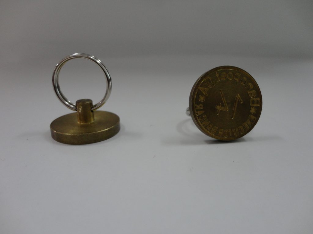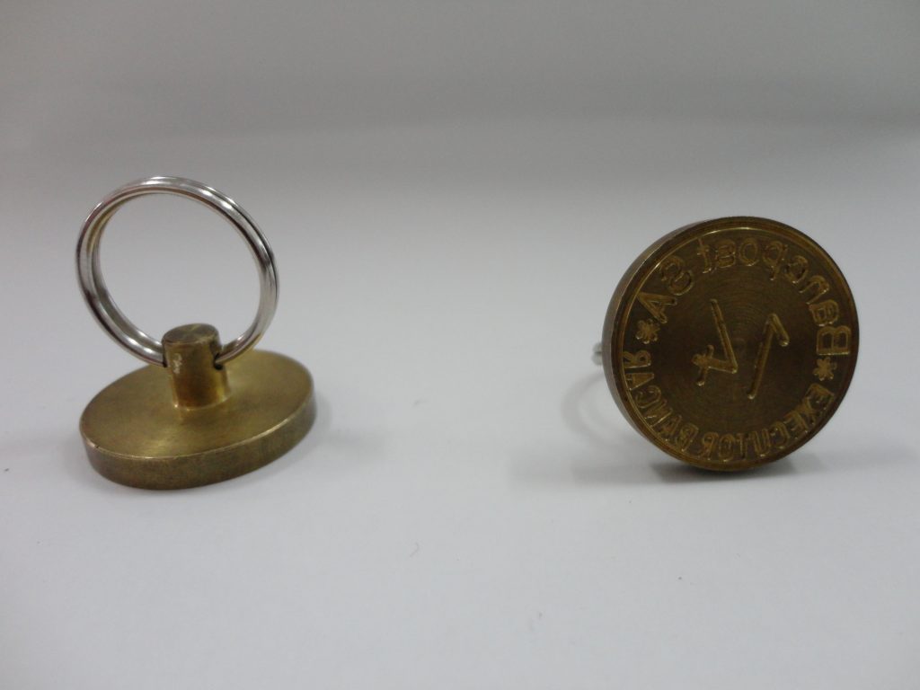 Caracteristici: suprafaţa utilă (cea gravată) poate avea diametrul de 20 mm, 25 mm sau 30 mm. Gravura se execută la comandă, cu caracteristicile solicitate (siglă, cifre sau litere). Este prevăzut cu inel de prindere sau mâner din lemn pentru o utilizare mai uşoară.